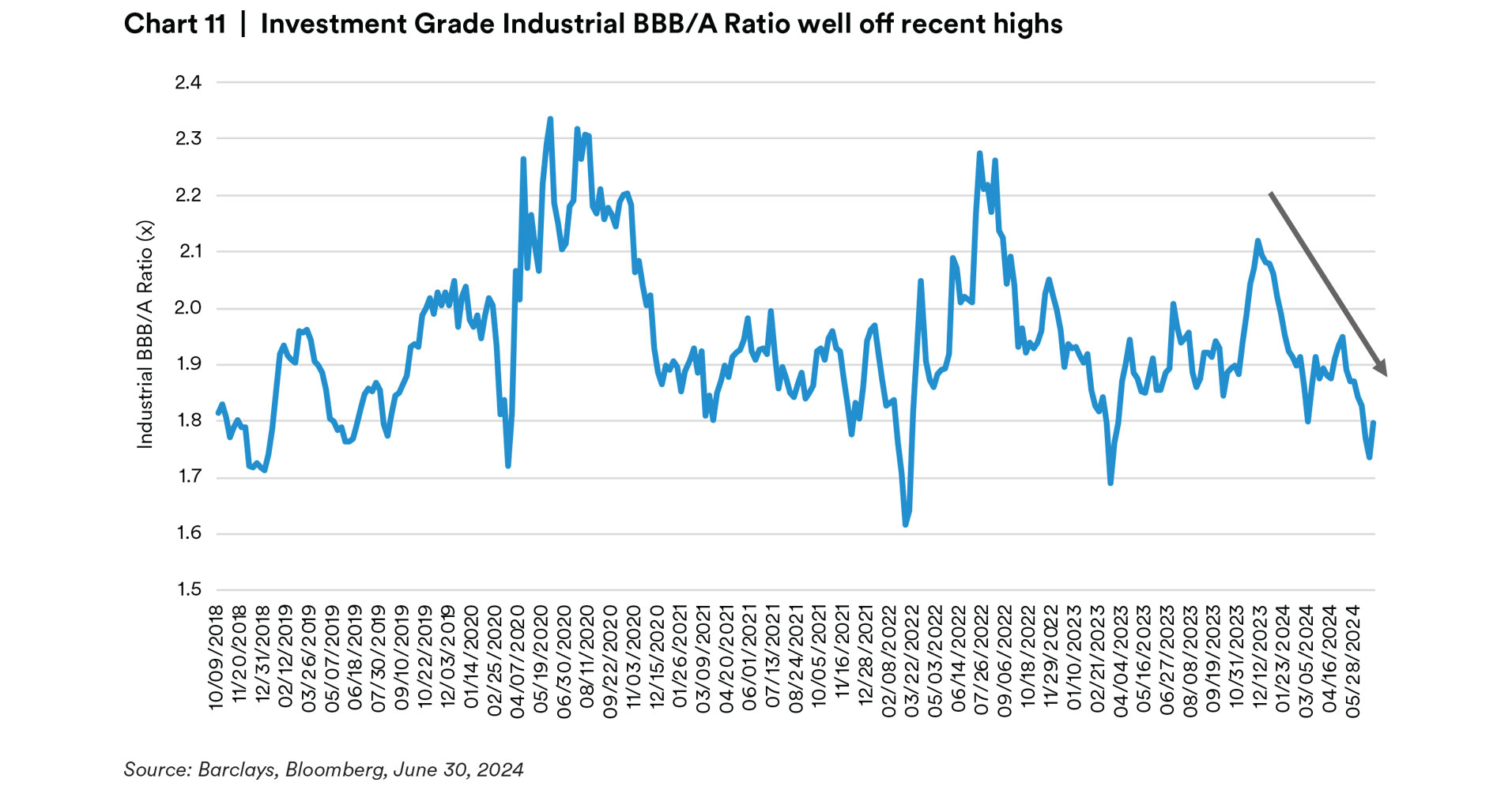 Such a picture is incongruent with generationally tight spread compensation over Treasuries in the credit market. A Fed cutting cycle (that seems closer than ever) threatens to dampen the technical support for credit by drawing in more corporate borrowing and hampering the yield sensitive buyer. Should that Fed cutting cycle come in response to macroeconomic weakness, we believe fundamentals will follow suit and lead to further credit underperformance. This would likely spell broad spread widening and a material decompression of spread relationships in an unwind of the recent commodity-like treatment of investment grade credit risk.