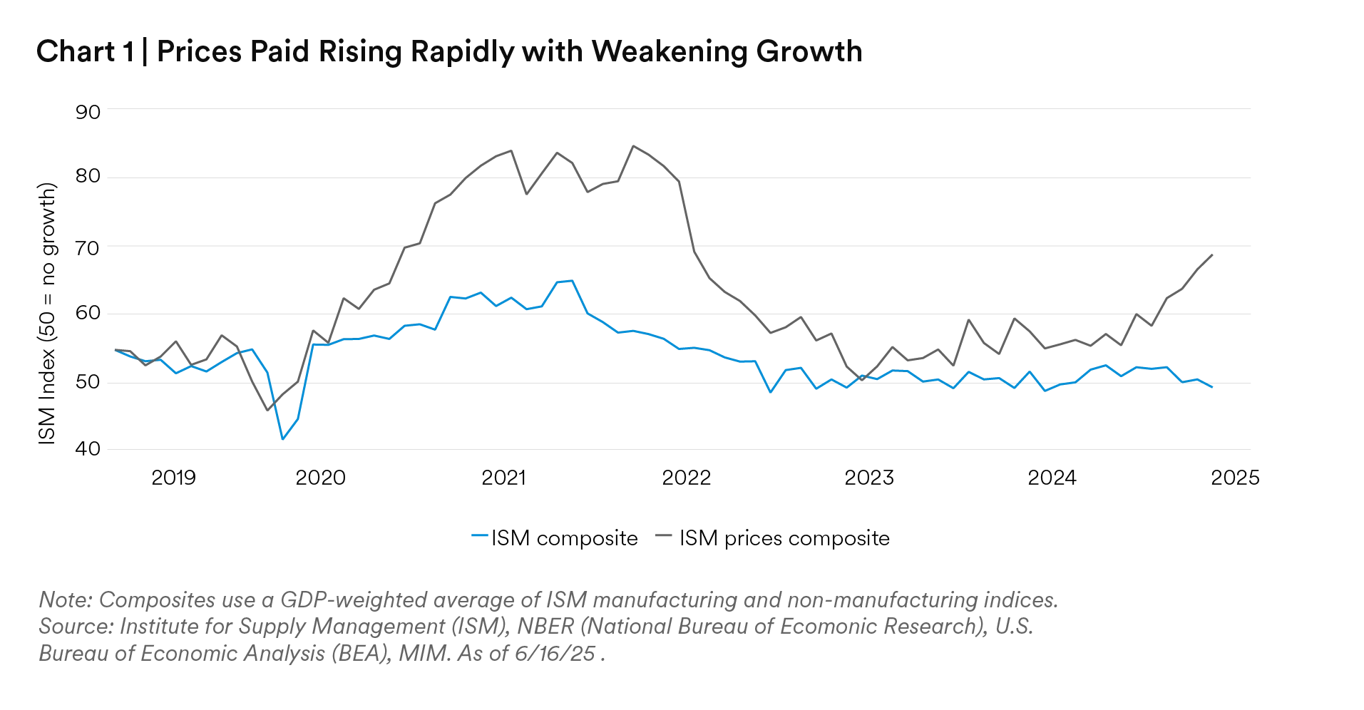Our composite ISM index sagged into contraction territory in May, the first time since July 2024.